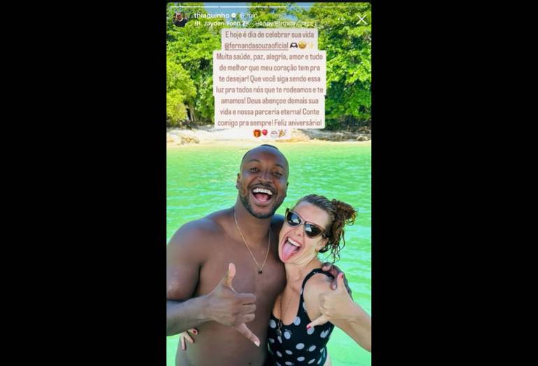 “E hoje é dia de celebrar sua vida, @fernandasouzaoficial! Muita saúde, paz, alegria, amor e tudo de melhor que meu coração tem pra te desejar! Que você siga sendo essa luz pra todos nós que te rodeamos e te amamos! Deus abençoe demais sua vida e nossa parceira eterna! Conte comigo pra sempre! Feliz aniversário!”