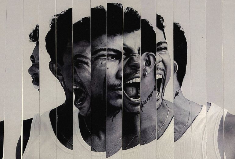 “Totalmente feita à mão, a imagem foi criada a partir de retratos impressos, cortados manualmente e colados em sequência, antes de serem escaneados. O gesto artesanal e o uso do papel, uma matéria-prima silenciosa e tão simbólica, dialogam com o processo de composição musical, que muitas vezes começa assim: na folha em branco”.